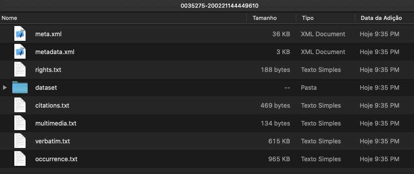Assim como os dados baixados do Dryad, os dados também vêm zipados. Faça o mesmo procedimento adotado para os dados do Dryad, e veja o que existe dentro do .zip: