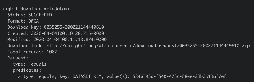 )occ_download_meta(res2)jaramilloetal2019 <- occ_download_get(res2, path = ".")jaramilloetal2019_df <- occ_download_import(jaramilloetal2019)